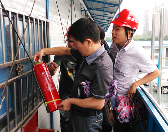 徐慶華部長在龍陽大道項目部對辦公區(qū)消防器材進行檢查