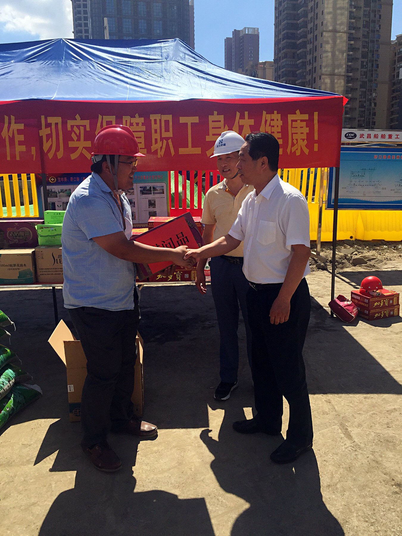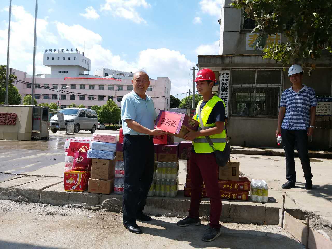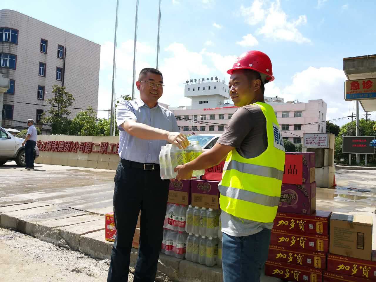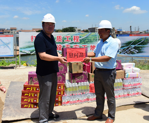 進(jìn)入盛夏,節(jié)節(jié)攀升的氣溫讓江城體會(huì)到了驕陽的威力。為將關(guān)懷和慰問及時(shí)傳遞給一線員工,7月19日、20日,市城投集團(tuán)公司領(lǐng)導(dǎo)金國發(fā)、林馳、楊楓分別來到我公司負(fù)責(zé)代建的漢江大道寶硚路、青化路、解放大道下延線等項(xiàng)目現(xiàn)場,向奮戰(zhàn)在一線的工作人員送去慰問,并將高溫慰問品送到員工手中,讓一線員工們?cè)诳崾罡惺艿搅艘唤z舒心的涼意。