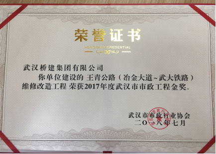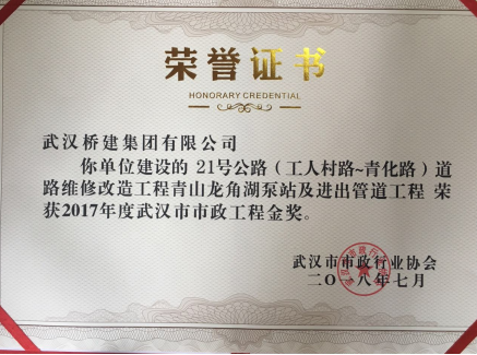 8月7日,從武漢市市政行業(yè)協(xié)會傳來喜訊,由橋建集團代建的21號公路(工人村路~青化路)道路維修改造工程青山龍角湖泵站及進出管道工程、王青公路(冶金大道~武大鐵路)維修改造工程、解放大道下延線道路5標(biāo)橋梁部分(二)施工工程三個市政項目,獲得2017年度武漢市市政工程金獎。