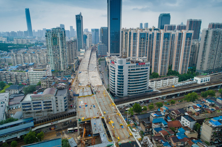 與此同時(shí),在硚口路、寶豐路與解放大道交會(huì)處,與高架橋跨輕軌段相連的寶硚四層立交主體結(jié)構(gòu)也于9日完工,立交雛形已現(xiàn)。待立交匝道全部建成后,有望解決建設(shè)大道、解放大道及漢陽(yáng)來(lái)往車輛的擁堵問題。