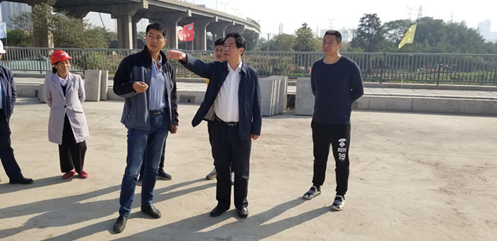 市城投集團(tuán)公司項(xiàng)目部相關(guān)負(fù)責(zé)人、橋建集團(tuán)副總經(jīng)理程金華參加檢查。