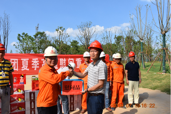 入夏以來,氣溫節(jié)節(jié)攀升,烈日炎炎,熱浪襲人。7月19日下午,市城投集團(tuán)公司副總經(jīng)理盛華來到橋建集團(tuán)公司黃家湖與三環(huán)線節(jié)點區(qū)域綜合整治工程項目現(xiàn)場慰問,為奮戰(zhàn)高溫的一線職工送去防暑降溫的物資。市城投集團(tuán)公司兩全辦主任吳偉文、橋建集團(tuán)總經(jīng)理艾詩明陪同慰問。