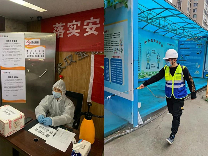 各辦公區(qū)域按時消殺,出入口安排專人測量體溫、查驗健康碼,公共區(qū)域擺設(shè)消毒用品,返崗前安排員工檢測核酸和CT,返崗后按需配發(fā)防疫用品。工程項目建設(shè)現(xiàn)場實行實名登記、封閉式管理。