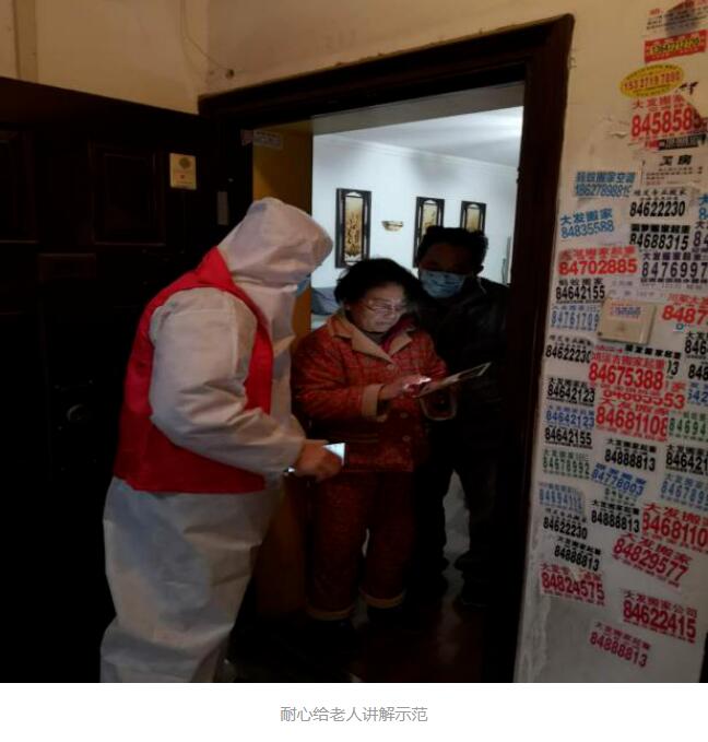 “掃樓”是個(gè)辛苦活,也是個(gè)細(xì)致活。為了確保每家每戶知曉并掌握微信健康碼操作,幫扶人員不僅要逐棟逐戶門口張貼健康碼公告,還要敲門入戶一個(gè)個(gè)進(jìn)行宣傳,指導(dǎo)“掃碼”操作并作好登記。隊(duì)員黃衛(wèi)對(duì)此深有感觸:“梅巖村是個(gè)老小區(qū),很多居民年齡偏大,我們往往一頓爬樓還沒(méi)時(shí)間喘口氣,又得手把手教他們操作,有些反應(yīng)較慢或者聽(tīng)力差的甚至要一遍遍示范?!?梅巖村是個(gè)拆遷小區(qū),不少門棟只有1-2戶人家,有時(shí)爬一棟樓只能完成一戶家庭的健康碼登記,可以說(shuō)是費(fèi)力不討好,但下沉人員從不因人少而“偷工減料”,堅(jiān)持戶戶上門。由于現(xiàn)有居民大部分和戶口不一致,幫扶人員就一個(gè)個(gè)仔細(xì)核對(duì),確保不漏一人。有些獨(dú)居老人沒(méi)有智能手機(jī),就認(rèn)真做好登記,報(bào)給社區(qū)統(tǒng)一處理。個(gè)別住戶防范意識(shí)較強(qiáng),不愿意開(kāi)門,下沉人員就想辦法隔門進(jìn)行講解。由于防盜門有隔音效果,交流起來(lái)很費(fèi)勁,隊(duì)員段凡開(kāi)玩笑說(shuō):“遇到這種情況,對(duì)話只能靠猜,講解只能靠吼?!?在大家的共同努力下,兩天下來(lái),順利完成 72戶,180人的健康碼登記和特殊關(guān)照5類人員統(tǒng)計(jì)工作,其中35位老人無(wú)微信,已做好登記交社區(qū)處理。