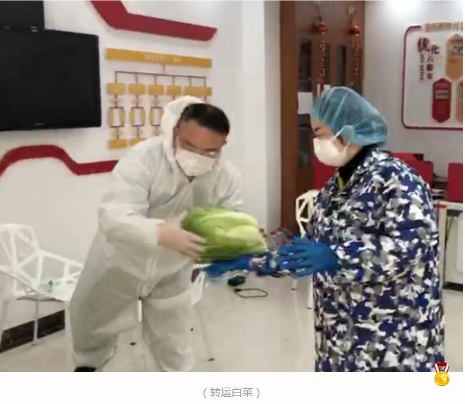 今天的任務(wù)一早就來(lái)了,3名同志到社區(qū)不一會(huì)兒,兩噸白菜就運(yùn)到了居委會(huì)門口。很快地,3名同志和社區(qū)工作人員一道,靠雙手轉(zhuǎn)運(yùn)完成了2噸白菜。