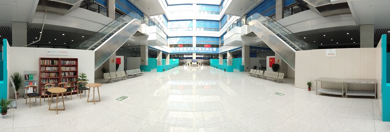 充分利用20米高凈空的寬敞中庭,在周邊增加射燈,設(shè)置圖書角、觀影區(qū)和小廣場等設(shè)施,為病患打造舒適的環(huán)境;