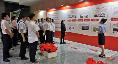 在武鋼博物館一樓大廳,全體黨員面對(duì)鮮紅的黨旗,在莊嚴(yán)的氣氛中重溫入黨誓詞。隨后在講解員的帶領(lǐng)下,全體人員參觀了設(shè)在一樓的中國(guó)共產(chǎn)黨黨簡(jiǎn)史展板,回顧了從1921年到2021年一百年間中國(guó)共產(chǎn)黨在“開(kāi)天辟地”“改天換地”“翻天覆地”“驚天動(dòng)地”四個(gè)階段中的104個(gè)大事記,學(xué)習(xí)了中國(guó)共產(chǎn)黨從誕生、發(fā)展、壯大到建立新中國(guó),以及帶領(lǐng)全國(guó)人民建設(shè)小康社會(huì)波瀾壯闊而燦爛輝煌的革命歷程。