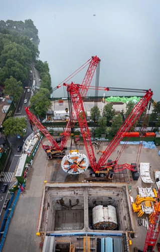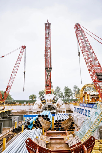 年內,兩湖隧道建設所需的“東湖號”“功勛號”“爭先號”3臺盾構機將陸續(xù)完成組裝和始發(fā)。其中,“東湖號”盾構機是兩湖隧道工程首個下井的盾構機,待刀盤定位安裝后,“東湖號”盾構機將開展管線聯(lián)接、調試等后續(xù)工作,計劃于6月底正式始發(fā),一路向北掘進,穿越東湖,直達省博工作井。另外,位于省博工作井的“功勛號”盾構機,也在進行著緊張忙碌的組裝,并計劃于近日實施刀盤吊裝。
