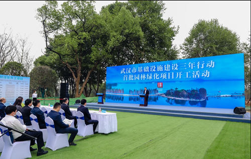 2022年5月18日上午,武漢市基礎(chǔ)設(shè)施建設(shè)三年行動首批園林綠化項目開工活動在東湖風(fēng)景區(qū)落雁景區(qū)改造項目現(xiàn)場舉行,市委副書記、市人民政府市長程用文宣布開工并講話。