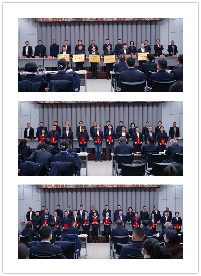 2022年1月21日下午,橋建集團(tuán)組織召開(kāi)2022年工作大會(huì)暨第三屆五次職工代表大會(huì),全面總結(jié)公司2021年各項(xiàng)工作,分析當(dāng)前面臨的形勢(shì)和任務(wù),安排部署2022年重點(diǎn)工作。集團(tuán)公司領(lǐng)導(dǎo)、本部中層干部、所屬單位領(lǐng)導(dǎo)班子成員和年度先進(jìn)集體和先進(jìn)個(gè)人代表、集團(tuán)公司職工代表參加了會(huì)議。公司黨委委員、監(jiān)事長(zhǎng)葛應(yīng)林主持會(huì)議。