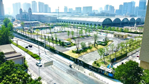 2023年是漢口火車站北廣場項目施工的收官之年,現(xiàn)場正在緊張進行涉鐵區(qū)域地面廣場鋪裝、綠化施工及收邊收角,力爭盡早對社會開放。
