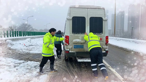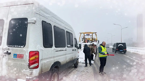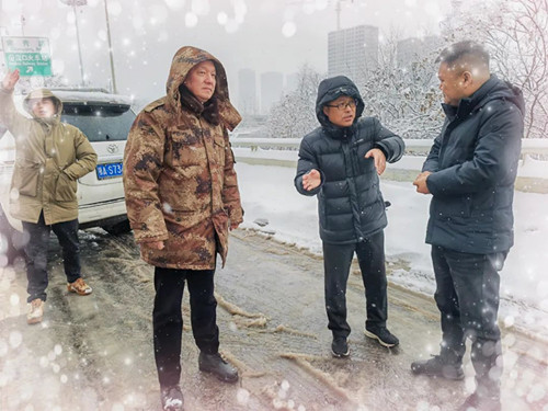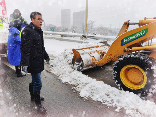 為了打好融雪攻堅(jiān)戰(zhàn),公司領(lǐng)導(dǎo)干部帶頭沖鋒一線,晝夜奮戰(zhàn),既當(dāng)好動員部署的“指揮官”,又當(dāng)好抓落實(shí)的“戰(zhàn)斗員”。自2月3日凌晨武漢市低溫雨雪冰凍災(zāi)害應(yīng)急響應(yīng)級別由Ⅳ級提升至Ⅲ級以來,公司主要領(lǐng)導(dǎo)、分管領(lǐng)導(dǎo)和同志們一道始終在項(xiàng)目現(xiàn)場日夜鏖戰(zhàn),身體力行,始終沖鋒在融雪抗冰保暢的最前端、第一線,現(xiàn)場查看值班值守、人員配置及抗冰物資儲備準(zhǔn)備情況,督促撒布機(jī)、鏟車、人員全力投入融雪除冰工作,連續(xù)四個(gè)晚上未回家,腳上的鞋襪被雪浸濕也顧不上回家換;公司負(fù)責(zé)的路段現(xiàn)場,到處都是橋建人浴“雪”奮戰(zhàn)忙碌的身影,融雪除冰工作群里的消息,從白天一直閃爍到天亮;天寒地凍,他們頂風(fēng)冒雪奮戰(zhàn)最前沿,面頰被凍得通紅,眉毛、睫毛上結(jié)滿了冰晶也沒有一句怨言,以強(qiáng)烈的責(zé)任擔(dān)當(dāng)和行動自覺踐行黨員干部沖鋒在前、戰(zhàn)斗在前的精神風(fēng)貌。