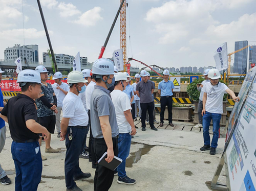 會前,與會人員參觀了二七過江通道漢口段項目現(xiàn)場安全標準化落實情況。二七過江通道漢口段項目在臨邊防護、高空作業(yè)防護、安全通道設(shè)置、現(xiàn)場安全動態(tài)巡查等方面嚴格規(guī)范,給人留下了深刻的印象。