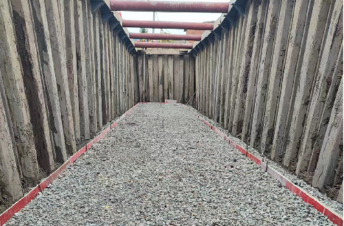 該項(xiàng)目緊鄰長江防汛墻坡腳,地質(zhì)復(fù)雜,全線道路范圍內(nèi)進(jìn)行地基處理,工程量較大,全線排水管涵基坑開挖深度為3m-5.3m,其中150m長的基坑開挖深度超過5m,屬于超危大工程,基坑施工風(fēng)險(xiǎn)大,安全要求高。為在汛期前完成基坑開挖施工,項(xiàng)目團(tuán)隊(duì)精心組織,合理安排,加大資源投入,不斷倒排工期,優(yōu)化資源配置,順利在汛期前完成了該斷面的排水管涵及基坑回填,為下一步路基填筑及路面施工打下良好基礎(chǔ)。