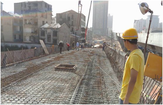 為盡量減少施工對周邊百姓出行的影響,根據(jù)道路交通車流量情況,采取不斷交通的施工模式,增設(shè)施工現(xiàn)場警示標志,落實施工人員安全防護措施,嚴格遵守文明施工標準,確保周邊行人、車輛正常通行。在此基礎(chǔ)上,根據(jù)歷年氣候變化和降雨情況,合理制定切實可行的雨季施工計劃,疏通排水設(shè)施,根據(jù)天氣及時調(diào)整施工部署,、使施工規(guī)范有序進行,確保雄楚大街高架(尤李立交-楚平路段)2015年8月30日按時通車。