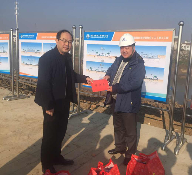1月26日上午,市城投集團(tuán)公司領(lǐng)導(dǎo)汪國(guó)圣一行來(lái)到我公司負(fù)責(zé)代建的解放大道下延線工程現(xiàn)場(chǎng),為春節(jié)期間仍堅(jiān)守在工作崗位上的工程建設(shè)者送去新春的祝福和節(jié)日的問(wèn)候,并送去慰問(wèn)金和節(jié)日物資。