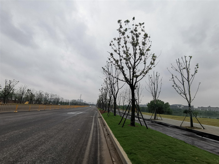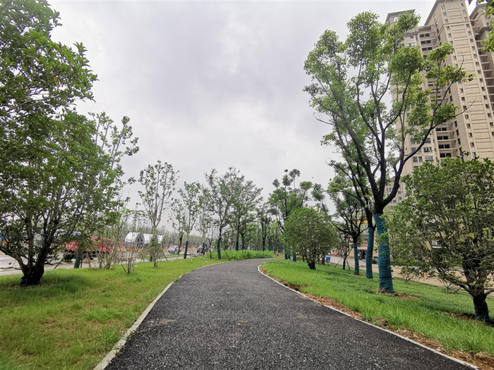 經(jīng)過改造后,曾經(jīng)雜路邊草叢生、破舊不堪的黃家湖大道變成一條最寬處達(dá)60米的景觀大道,整條道路煥然一新:刷黑的道路寬敞平坦,道路兩旁種植著各種喬木和灌木,像是一片片小森林,沿著綠化帶的步道徜徉,令人心曠神怡。