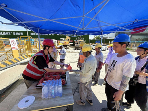 “高溫天氣對(duì)現(xiàn)場(chǎng)工作人員來(lái)說(shuō)是種考驗(yàn),要在保障他們?nèi)松戆踩那疤嵯聯(lián)屵M(jìn)度。”二七過(guò)江通道工程現(xiàn)場(chǎng)業(yè)主代表張飛說(shuō),目前已將施工人員作業(yè)時(shí)間調(diào)整為“早出晚歸”模式,通過(guò)“干兩頭、歇中間”錯(cuò)時(shí)施工的方式避開(kāi)正午高溫時(shí)間段,項(xiàng)目現(xiàn)場(chǎng)備有西瓜和涼茶等清涼解暑飲品,還備齊了藿香正氣液、清涼油等防暑降溫藥品,生活區(qū)配備了空調(diào),在緩解高溫作業(yè)壓力的同時(shí),也為項(xiàng)目正常推進(jìn)創(chuàng)造了條件。